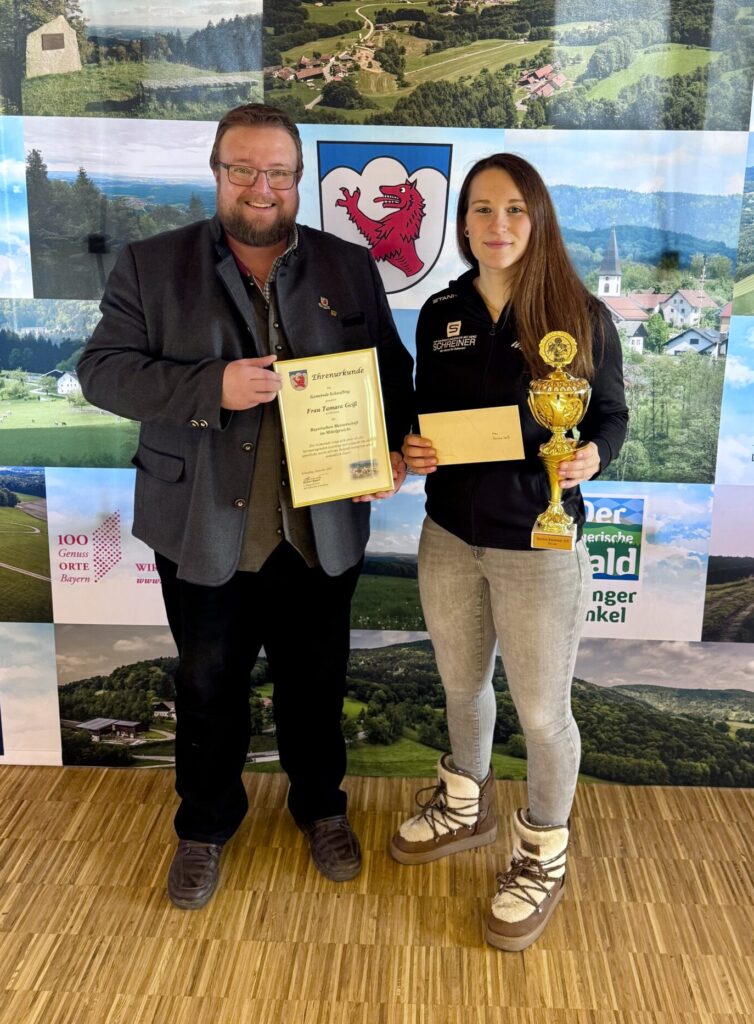 Tamara Geiß, die für den Boxclub Wallersdorf antritt, holte sich den Meistertitel mit einer eindrucksvollen Leistung. „Tamara zeigt, was möglich ist, wenn Talent auf Fleiß trifft – und wenn man bereit ist, konsequent an sich zu arbeiten“, betonte Bürgermeister Bauer. „Im Namen der ganzen Gemeinde gratuliere ich sehr herzlich. Wir sind stolz, so sportliche, ehrgeizige und disziplinierte junge Menschen in unserer Mitte zu wissen.“